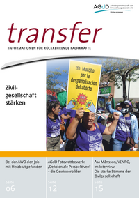 Die Arbeitsgemeinschaft der Entwicklungsdienste e.V. (AGdD) ist der Dachverband der sieben anerkannten Träger des Entwicklungsdienstes in Deutschland. Das Entwicklungshelfer-Gesetz (EhfG) bildet die Grundlage unserer Arbeit. Wir informieren über den Entwicklungsdienst. Im AGdD Förderungswerk begleiten und unterstützen wir rückkehrende Fachkräfte aus dem Entwicklungsdienst. Wir sind Ansprechpartnerin für Parlament, Regierung und Parteien und führen einen intensiven fachlichen Austausch über Entwicklungsdienst-relevante Fragen.