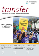Our journal, transfer, provides information about current developments in the labour market and in further education, and addresses the professional development of professionals who are returning from development service or civil peace service.